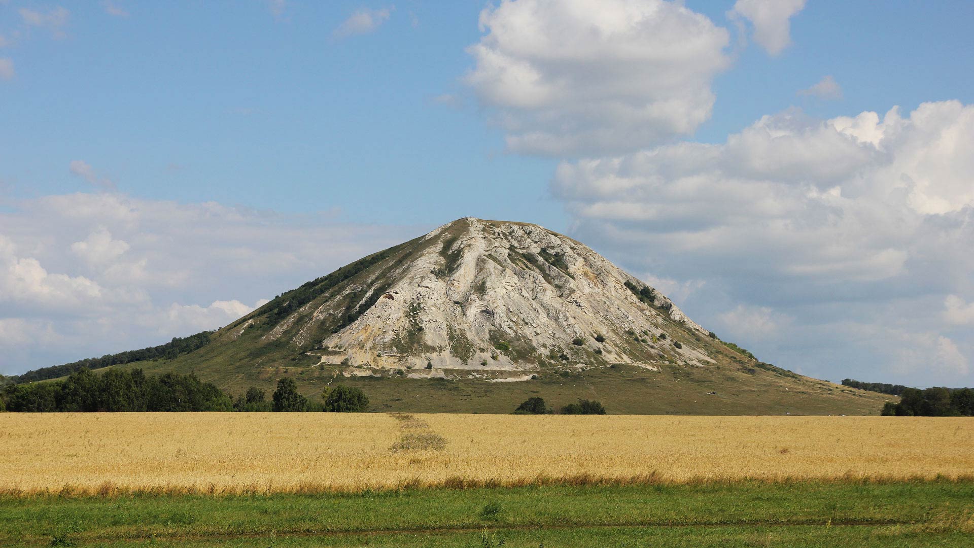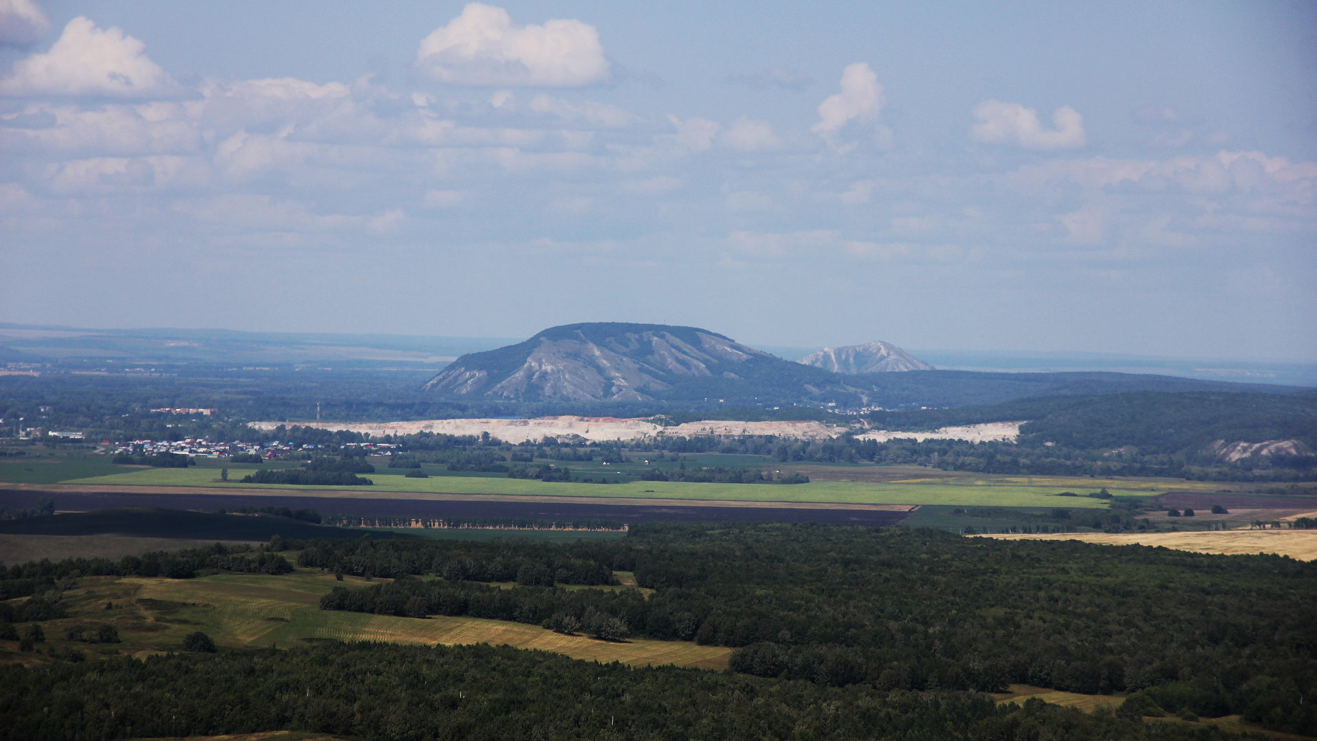The Bashkortostan Shikhans — isolated hills in the South Urals. They consist of four single-mountain mountains: Toratau, Shakhtau, Yuraktau and Kushtau, forming a narrow chain stretching along the Belaya River for 20 km. They are located near the cities of Sterlitamak, Ishimbay and Salavat. These are the remnants of Fringing reef and formed in the warm sea of the beginning of the Permian period. In the sediments there are fossils — the remains of ancient invertebrates. The characteristic features of the Bashkir shikhans and many waste heaps are the presence of a gentle slope, with an inclination angle of about 30 degrees from the top to the bottom, and natural talus. Such a combination of qualities can not be attributed to factors of indiscriminate effect, to the elements.